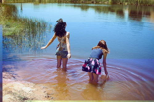 I hear lake water lapping with low sounds by the shore;